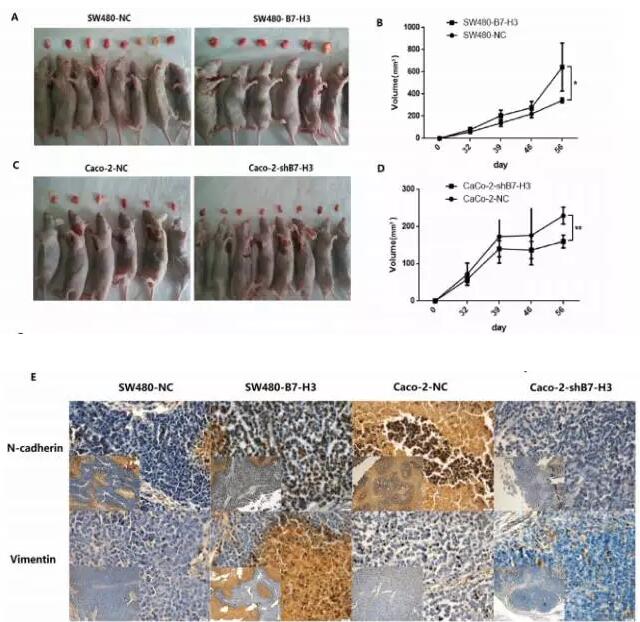 深入研究表明PI3K-Akt信号通路是B7-H3调控SMAD1表达改变的重要信号通路。动物实验的结果,也证明了B7-H3上调后可促进结肠癌移植瘤的上皮间质转化。