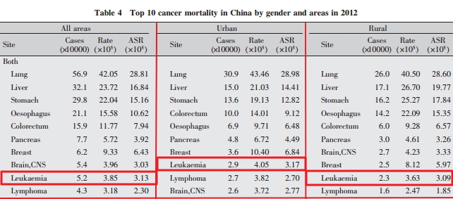 2012年白血病的死亡率