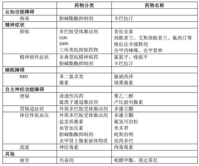 目前针对 PD 非运动症状治疗的方法十分有限,已有的治疗方法见表 3。