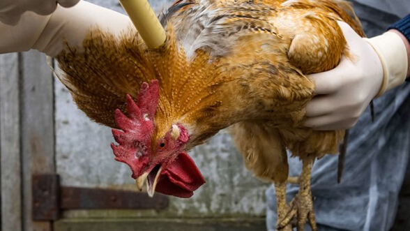 一只鸡正在接种疫苗。摄影Vasily Fedosenko/Reuters