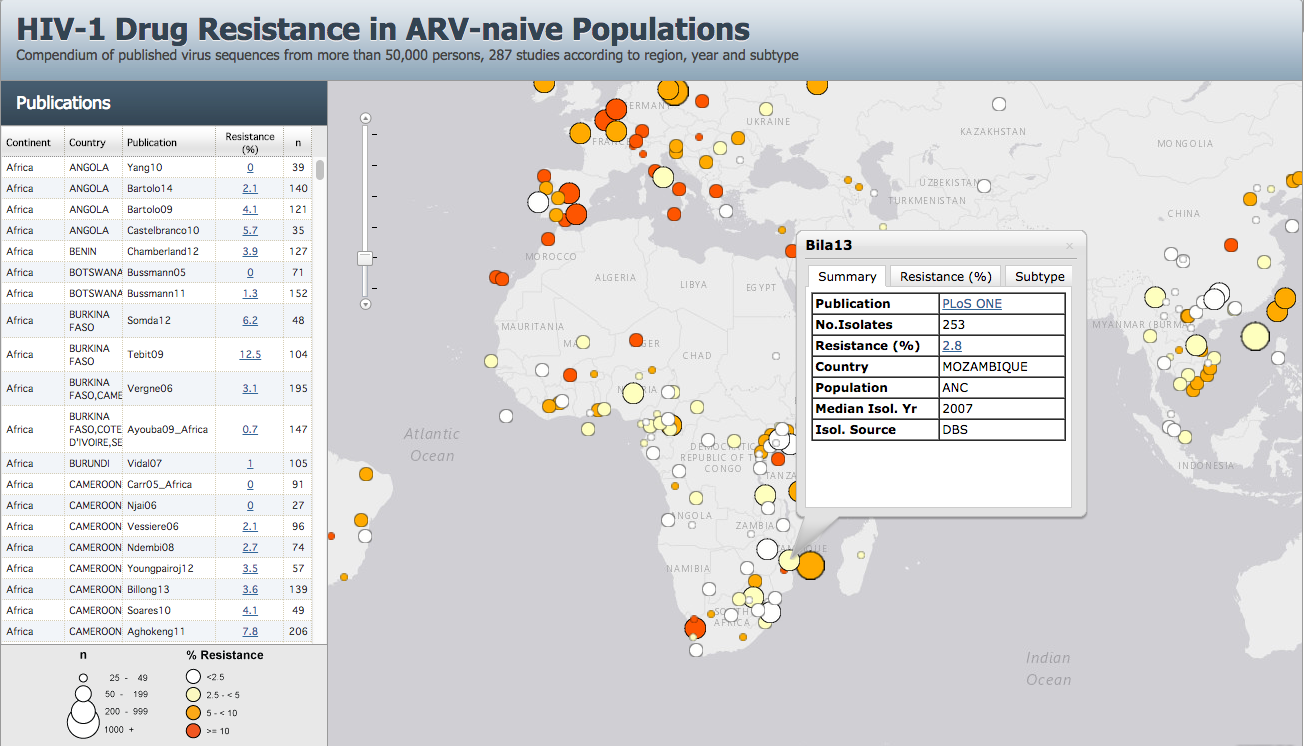 近期,武汉病毒研究所杨荣阁研究员学科组与国际HIV/AIDS相关领域专家合作,在HIV传播耐药研究方面取得重大研究成果,相关论文“Geographic and Temporal Trendsin the Molecular Epidemiology and Genetic Mechanisms of Transmitted HIV-1 DrugResistance: An Individual-Patient- and Sequence-Level Meta-Analysis”发表在国际著名期刊PLoS Med上。 抗逆转录病毒药物的大规模应用能够显著降低中低收入国家艾滋病人的死亡率以及HIV的感染率,但是HIV快速积累的耐药性突变使得抗HIV药物治疗遭受巨大挑战,HIV/AIDS防治机构迫切需要了解HIV传播耐药性随着时间的变化规律以及在不同区域的流行趋势,为HIV/AIDS治疗提供临床指导和药效评估,并为设计持久高效的抗HIV药物提供第一手资料。 为此,全球HIV耐药研究顶尖团队——斯坦福大学HIV耐药研究中心牵头,联合32个国家的63个团队,针对2000-2013年发表的287篇论文、111个国家的50869个样本展开HIV-1逆转录基因耐药的详尽分析,其中,杨荣阁学科组作为唯一的中国团队参与了本次合作。 该研究最终得到多个区域(包括撒哈拉以南的非洲地区、南亚/东南亚地区、高收入亚洲国家、拉丁美洲/加勒比地区、欧洲和北美)总体HIV-1的平均传播耐药性流行趋势;并发现在撒哈拉以南的非洲地区以及南亚/东南亚地区,HIV-1传播耐药有着独立的发生趋势;另外,研究人员发现部分关键性位点突变能导致区域性较高的耐药流行趋势,这些突变位点的检测能够经济并有效地评估中低收入国家感染人群抗HIV药物治疗方案。该研究可用于指导不同地区采用地区适用性的低成本药物评估以及高效的药物或者药物组合的治疗方案,为优化现行全球范围内的HIV/AIDS临床治疗方案提供了重要的战略依据。