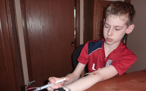 他的妈妈Kimberly每三周会起早为Ben注射帮助他在短时间内凝血的药物。“我从没想过要做一个护士”,她说。
