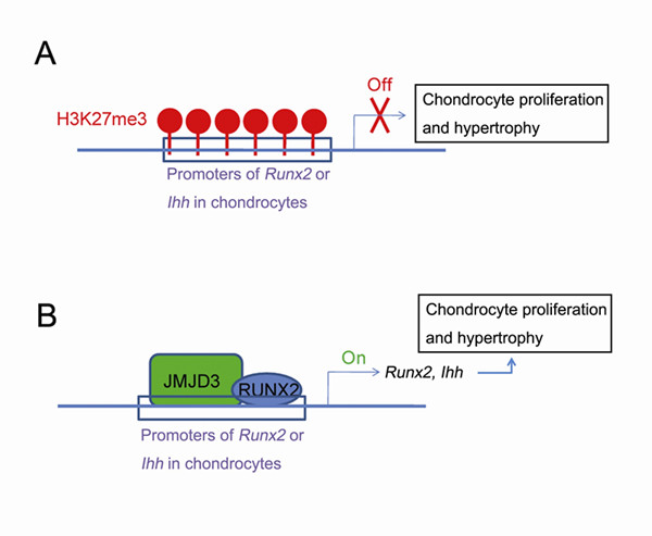 图示:JMJD3协同RUNX2促进软骨增生和肥大模式图