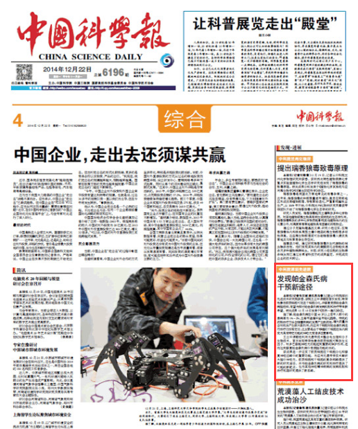 近日,从中科院深圳先进技术研究院获悉,该院王立平课题组首次发现,特异性激活胶质细胞可促进干细胞分化,并修复受损帕金森氏病脑组织,有望为探讨帕金森氏病发病机制和治疗带来新希望。相关成果12月18日发表于《自然—通讯》杂志。 据了解,帕金森氏病在中国60岁以上老年人群中的患病率为1%~2%,且每年递增并呈年轻化趋势。传统的药物治疗方法会随着疾病的发展产生耐药性,增大药量后会对机体产生较大副作用。而应用干细胞对帕金森氏病进行治疗仍没有定论,这主要是由于移植的干细胞在体内转变为具有特定功能的神经元受诸多因素影响。 王立平课题组利用光遗传技术整合电生理和分子生物技术,首次发现特异性激活胶质细胞可释放生长因子,对多巴胺能神经元功能起到重要的保护作用,进而达到修复帕金森氏病中受损脑功能的目的。 该成果进一步证实了胶质细胞在干细胞分化和修复神经回路中的重要功能,为应用光遗传学技术解析大脑中神经元、胶质细胞和干细胞的复杂网路提供了新的研究途径,并为帕金森氏病的研究和治疗提供了可能的新靶点,也为其他神经精神疾病的发病机制和治疗机理研究提供了新思路。 《中国科学报》 2014年12月22日 第4版:综合 http://news.sciencenet.cn/sbhtmlnews/2014/12/295358.shtm