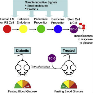 | 导读 | 近日,《细胞》杂志上的一项研究实现了糖尿病治疗的重大突破。研究人员发明了一种可以将胚胎干细胞转化成β细胞的方法,并且在糖尿病小鼠模型中移植该β干细胞后,小鼠迅速恢复正常的血糖水平。研究人员说:“我们的研究有望在10天内治疗糖尿病,这项突破对治疗慢性疾病是前所未有的。” |