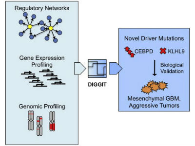 在这项新研究中,研究团队开发了被称为DIGGIT(Driver-Gene Inference by Genetical-Genomic Information Theory)的新算法,并将其与之前的计算工具结合起来。DIGGIT能够从主调节子追溯推动癌症发展的遗传学事件。DIGGIT的开发者是文章的第一作者James C. Chen博士。