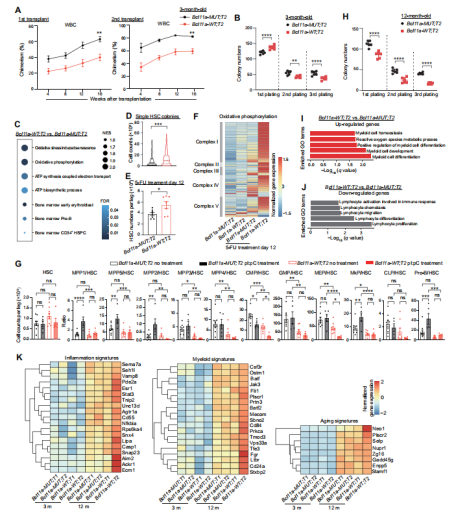 本研究旨在探究Bcl11a在维持造血干细胞(HSC)功能方面的作用,并分析了其在衰老过程中细胞自主和非细胞自主的双重作用机制。主要结果如下: