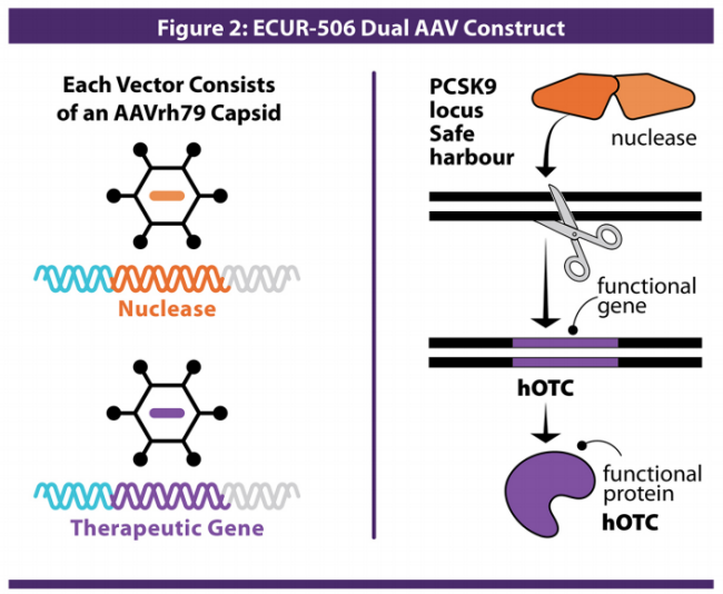 图4. ECUR-506:使OTC基因整合到PCSK9基因座7号外显子中以在肝细胞中实现OTC的长期表达 [10]。