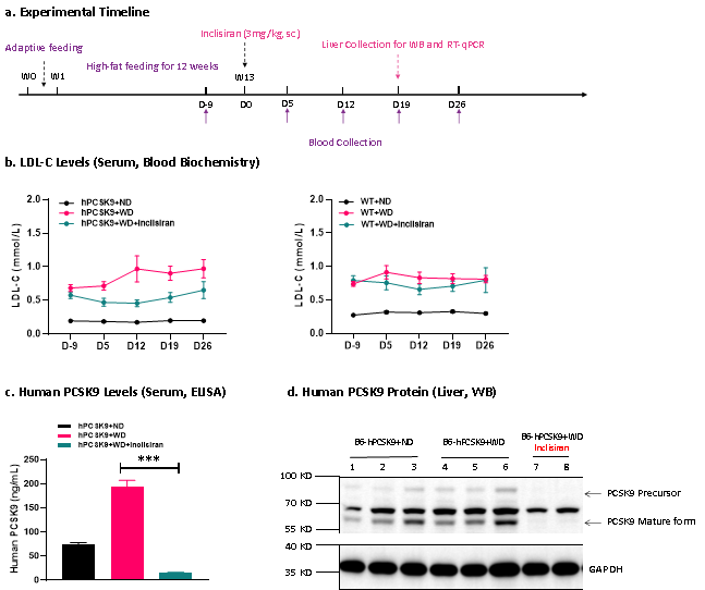 PCSK9作为心血管领域的重要调控因子,其角色已拓展至推动肝脏靶向基因治疗创新及加速概念验证的关键验证基准。赛业生物开发的B6-hPCSK9人源化小鼠(C001617),凭借其人类PCSK9基因完整序列(含关键调控元件)原位替换的优势,能够较为精准地模拟人类PCSK9的表达、调控及药物反应,为评估靶向人PCSK9(包括mRNA、蛋白以及基因组层面的启动子、内含子和非编码区)的创新疗法,提供了一个具有高度临床相关性、经过充分验证且能有效预测临床转化的临床前评估平台,为相关创新疗法的临床前研究与开发提供有力支持。