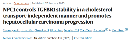 Li, S., Yan, L., Li, C. et al. NPC1 controls TGFBR1 stability in a cholesterol transport-independent manner and promotes hepatocellular carcinoma progression. Nat Commun 16, 439 (2025). https://doi.org/10.1038/s41467-024-55788-5