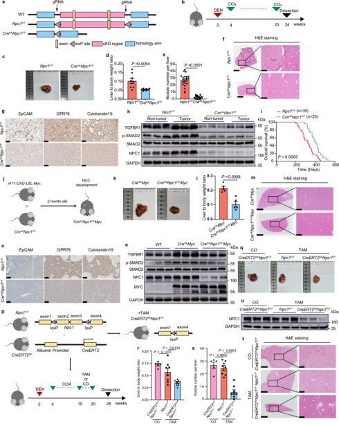 通过多个小鼠模型来验证NPC1在调控TGF-β通路和HCC进展中的作用