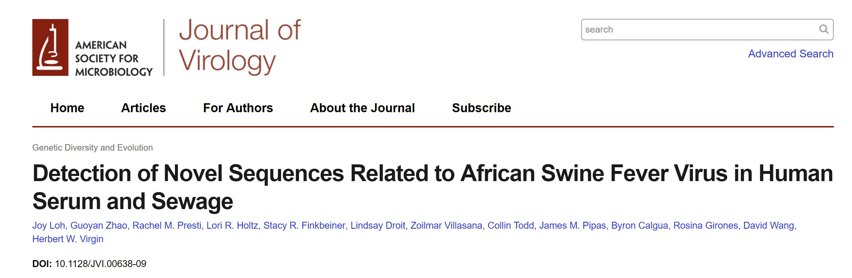 研究人员表示:“我们报告了人类血清和污水中新型病毒序列(病毒)的发现,这些序列与 Asfarvirus 科明显相关,但与 ASFV 高度不同。这些序列的检测表明,Asfarviruses 可能存在比以前认为的更大的遗传多样性,并提出了人类感染 Asfarviruses 的可能性。”
