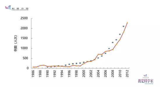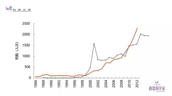 上图这个蓝色曲线,是在一个科学文献网站万方上面搜关键词“甲状腺B超”得到的不同年份的文献数,红色曲线是不同年份的病例数。甲状腺疾病过去通过触诊来检测。“来,你把脖子抬一下,我摸一下。”医生摸一摸,只能摸到比较大的结节、肿块,小的是摸不到的,但是有了甲状腺B超之后非常小的结节都能检查出来。