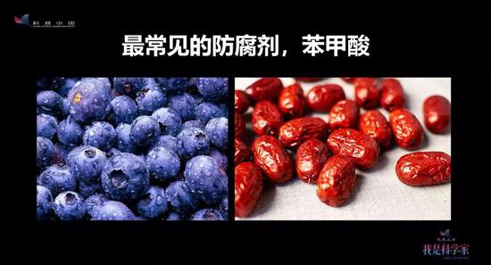 我们平常最喜欢吐槽的是什么?实际上是添加剂,而且添加剂里面大家最容易说的就是防腐剂。防腐剂里面最常用的一个叫做苯甲酸或者叫苯甲酸钠。大家觉得防腐剂是化学物质不安全,其实每个人每个细胞都是化学物质。