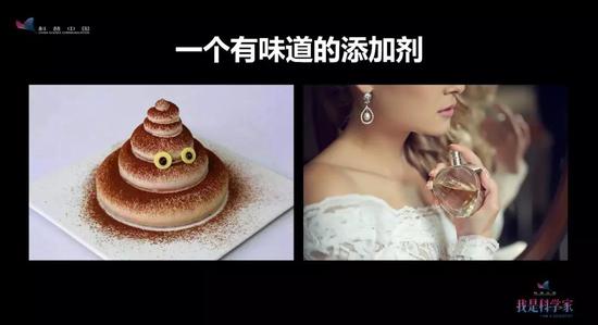 接下来讲的第四个添加剂是调香剂。屎大家都知道,很臭,里面的臭味是什么东西呢?有很多东西,比如说生物胺类,比如说硫化氢,其中有一个很重要的东西叫粪臭素。粪臭素是一种吲哚类化合物,几乎所有的花香调的香水里面都有吲哚,但是吲哚不是从屎里来的,是从化工原料合成出来的。