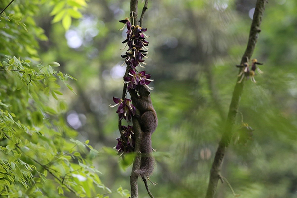 图1 赤腹松鼠为油麻藤授粉(图片来自四川都江堰青城山,拍摄,陈立军)