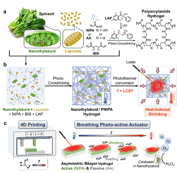 (3)基于纳米类囊体和热响应聚合物的仿生4D打印可呼吸式水凝胶致动器