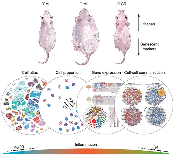 增龄伴随的多器官渐进性功能衰退,是一系列衰老相关重大疾病(如神经退行性疾病、心血管疾病和糖尿病等)的关键诱因。细胞种类的多样性决定了组织器官的异质性和复杂性,导致各组织器官在衰老过程中呈现出不同的细胞及分子特性,但是传统的研究技术难以精确地揭示这些细胞类型特异性的分子变化及调控规律。在衰老干预方面,卡路里限制(即节食)在多个物种中被证明是延缓衰老的重要途径,但其组织细胞特异的分子机制尚不明确。