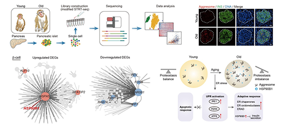 该研究在国际上首次报道了非人灵长类胰岛衰老的单细胞转录组图谱,不仅系统解析了灵长类胰岛中多种细胞类型的衰老分子特征,而且揭示了蛋白稳态失衡是胰岛β细胞衰老的驱动因素,为延缓胰岛衰老、恢复老年个体的糖耐量提供潜在干预靶标,为有效预防和治疗糖尿病提供全新思路。