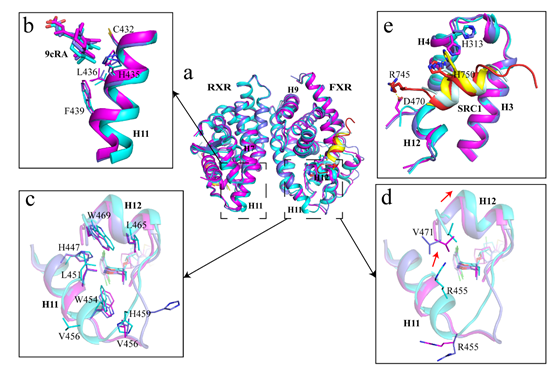 配体引起的FXR/RXR异二聚体H11的末端的构象变化
