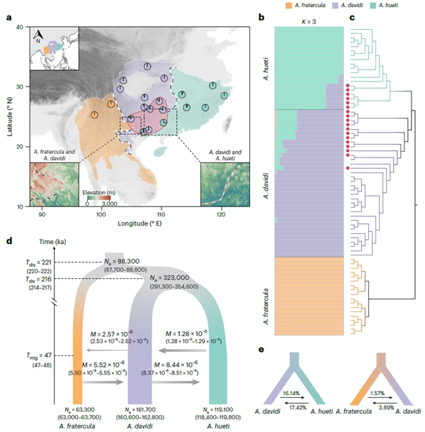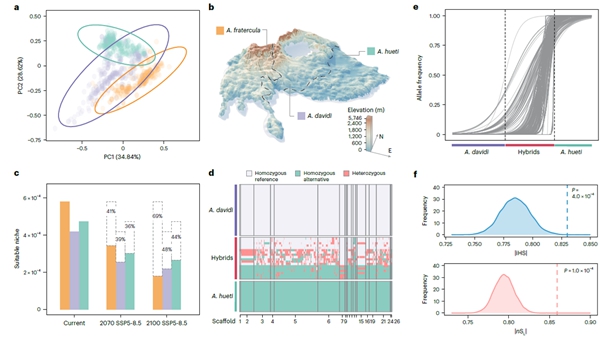 以上究结果以 “Hybridization mitigates climate change risk in mountainous birds”为题,于近日发表于Nature Climate Change(https://www.nature.com/articles/s41558-025-02485-w)中国科学院动物研究所动物多样性保护与有害动物防控全国重点实验室的博士生张帅、陈逸林博士为共同第一作者,中国科学院动物研究所的屈延华研究员为通讯作者。中国科学院动物研究所雷富民研究员,PIFI学者Per Ericson为该研究提出宝贵意见。该研究得到了国家自然科学基金等项目的资助。