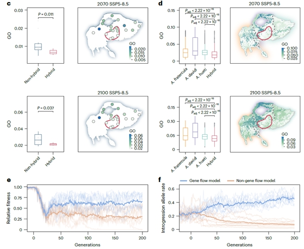 该研究表明,种间基因流是增强物种气候适应能力的重要进化机制,通过引入新的遗传变异,帮助物种在快速变化的环境中维持适应潜力。同时,研究结果也凸显了维护迁徙通道与接触区稳定的重要性,这对于促进物种间的基因交流和种群适合度的恢复非常关键。此外,该研究建立的分析框架,将群体遗传学与气候脆弱性评估相结合,为其他分布受限类群的气候适应研究提供了可推广的思路与方法。