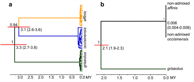 随着基因测序技术的发展,近缘物种之间的基因渐渗现象在学界已经被广泛认同。比如,化石DNA证明了现代人与其近缘类群尼安德特人和丹尼索瓦人均存在不同程度的基因渐渗,虽然后两个人种已经灭绝,但其部分基因已经整合到部分现代人类的基因库中,并且发挥着重要的作用。物种灭绝在自然界是很普遍的,我们的研究推测:和已灭绝物种之间发生“幽灵渐渗”的现象可能是自然界很常见但目前却被广泛忽略的一种现象。