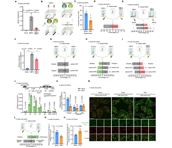 图2 水稻病毒RSV通过改变OsMYC2蛋白定位下调OsBSMT1转录减少水杨酸甲酯挥发