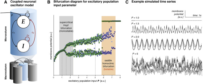 在行为水平上,暴露于PTZ或海藻酸会导致游泳活动的普遍增加,在较高的药物浓度下,未经处理的野生斑马鱼很少观察到全身抽搐运动。在琼脂糖固定化幼虫前脑或中脑的电生理记录中,可以清楚地观察到这些急性药物操作甚至高温下反复出现的短暂发作间期样放电和长时间多峰发作性样放电。斑马鱼幼鱼PTZ诱发的癫痫发作对苯二氮卓类和丙戊酸钠等抗癫痫药物敏感,与长期以来治疗啮齿动物PTZ诱发癫痫的有效性相匹配。这样,斑马鱼模型可以概括行为和电生理特征,以及哺乳动物大脑中急性癫痫发作对AED的反应。尽管这些急性癫痫模型带来了新的见解(在下面更详细地描述),但它们并没有捕捉到癫痫的几个关键特征,如自发发生的癫痫、神经发育性共病和发作间大脑动力学的某些特征。然而,我们越来越多地可以确定许多癫痫患者的潜在遗传病因,特别是在儿科癫痫。这些已知的遗传机制现在为斑马鱼癫痫模型的建立提供了机会。特别是针对lgi1,kcnq3,chd2,kcnj10a,stx1b和scn1lab的斑马鱼模型。Baraban实验室最初基于随机ENU(N-乙基-N-亚硝基脲)突变筛选描述了更稳定、或许更令人信服的遗传模型:mib/ube3A和scn1lab。有趣的是,scn1lab552-/-幼虫表现出自发的异常电图活动,运动亢进和抽搐活动,起始于3 dpf并持续到10-12 dpf左右的早期死亡。Dravet综合征的这种模型已在行为,电生理,转录组和代谢水平进行了表征,并已广泛用于药物筛选。最近,诸如CRISPR / Cas9之类的新型靶向诱变技术的出现为针对所有可能的人类癫痫单基因突变的稳定遗传模型的产生打开了大门。大脑癫痫的动态特征:从在人类癫痫患者中使用头皮电生理学进行诊断的一个世纪的经验中,一系列的特征已经成为癫痫患者大脑的主要脑电图特征:这些包括癫痫发作之间或期间的特定“癫痫样”放电(例如尖峰和波状放电),癫痫发作期间节律性EEG活动的形状和组成的特征性变化,通常通过专家的视觉分析(例如癫痫发作的节奏)来识别 癫痫发作时),以及可通过计算工具测量的脑电信号成分中一些更细微的定量差异(例如,锁相高伽马活性的增加,低阿尔法功率的增加或阿尔法相位同步性的降低)。由于这些记录方式在空间和时间尺度上存在差异,因此识别可能与癫痫性脑电图标记相对应的可能的钙影像学测量并非易事:用遗传编码的钙指示剂成像的神经元活动具有比电生理记录低得多的时间分辨率,但可以根据时空激发特性分离单个细胞的信号。动态系统的数学描述可以为解释在不同记录方式下观察到的神经元动力学现象和特征提供一个概念性的桥梁。在动态系统的框架内,时变现象(如脑电记录中的神经元放电或振荡)可以用耦合微分方程来描述,该方程能及时捕捉系统状态的演化。此类描述经常用于解释跨多个尺度的神经元系统的动力学-从亚细胞神经元区室的描述到全脑动力学。即使单个零件的行为具有微弱的非线性,也会在耦合系统中出现复杂的动力学,包括由基本模型参数的微小变化驱动的稳定状态之间的过渡。癫痫脑的主要特征,即癫痫发作的倾向,可以被一个在不同振荡机制之间分支的动力学系统优雅地捕捉到,目前已有大量文献报道。这些不同的分支,反过来,可以在一个简单的神经元振荡器模型中再现,其随时间的演化类似于局部场电位和癫痫发作的脑电图记录。像这样基于模型的描述,有助于将一组经验性观察与可能的癫痫相关癫痫发作机制联系起来。这些不仅可以用来描述癫痫发作期间的大脑动力学,还可以描述癫痫发作之间观察到的异常动力学(即发作间期异常)以及可能与癫痫发作活动倾向增加有关的动态状态的定量标记。