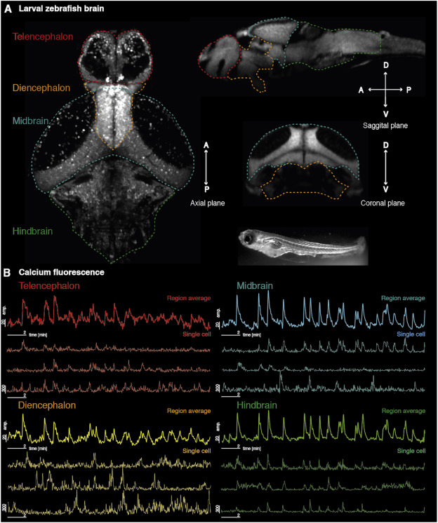 当图像在足够高的采样频率下采集时,许多由脑电数据得到的见解和模型也适用于斑马鱼幼虫的钙成像。尽管需要考虑缓慢的探头衰减时间或探针对钙动力学的干扰,但钙成像测量与电生理学的相关性通常很好。然而,当将这些类型的建模策略应用于以较慢采样频率采集的数据时(例如,对于全体积记录),仍然存在挑战。 然而,将单细胞动力学整合到任何模型中的挑战不仅在技术上(即分析代表单个神经元的数千个时间序列),而且在概念上也面临挑战:癫痫动力学来自整个耦合系统的整合行为 。虽然癫痫发作与单个细胞行为的改变有关,但中尺度的动力学变化是癫痫发作活动的诊断标志。这些中尺度动力学不能仅仅从孤立的单细胞行为的观测中准确预测,因此通常被认为是突发性的。斑马鱼大脑中的神经元功能异常成像:目前,在斑马鱼幼鱼的钙成像数据中,可以检查癫痫脑中报告的各种多尺度动力学特征。在这里,我们讨论了斑马鱼大脑中与癫痫发作相关的钙成像的关键特征,并描述了如何利用这些特征来理解癫痫的病理生物学。许多研究已经使用影像学方法来描述GABA-A受体拮抗剂戊四氮(PTZ)如何诱导斑马鱼幼体的急性癫痫发作。这些研究报告了各种动力学特征,揭示了癫痫发生的机制,我们将在下面总结。