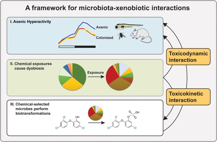 人们越来越了解微生物群与外源化合物试剂相互作用以影响宿主毒性(例如神经发育毒性)的机制。从理论上讲,可以通过毒理动力学相互作用而发生,其中化学暴露会导致营养不良,其特征是宿主相关微生物群落结构发生变化,进而影响宿主。化学选择的微生物群也可以进行化学激活或解毒反应(即毒代动力学相互作用)。幼虫或成年斑马鱼的许多研究表明,该模型系统可用于描述暴露于药物或环境化学物质后的失调。在斑马鱼模型中获得的最新证据还证明了化学物质与微生物群之间的毒代动力学相互作用,其中肠道微生物对外源化合物进行生物激活或解毒。