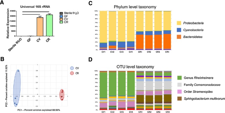 摘要:微生物对行为和应激反应的影响知之甚少。斑马鱼幼虫有利于神经免疫研究的独特特征,然而,它们目前未被充分利用。我们使用无菌的斑马鱼来确定微生物对行为和压力测试的影响。微生物的缺失极大地改变了运动和焦虑相关的行为。在缺乏微生物暴露的幼虫中,对急性应激源的特征性反应也被消除。益生菌乳杆菌处理能有效地减轻常规饲养的斑马鱼幼虫的焦虑相关行为。这些结果强调了微生物通过微体肠-肠轴向中枢神经系统传递的重要性,并为斑马鱼幼虫的神经免疫研究奠定了基础。关键词:斑马鱼 微生物 无菌 焦虑 应激 行为简介:斑马鱼幼虫是一种新兴的神经行为研究高通量模型系统。受精后2天和3天从绒毛膜孵化后,幼虫在受精后4~5天表现出大量的神经行为表型。这些幼虫的许多行为与人类神经过程和疾病中所见的相关,如焦虑、学习、恐惧、社交和精神病。斑马鱼幼虫最具特征性的行为之一是焦虑相关行为,通常由趋化性或接近垂直表面的倾向来测量。这种行为在进化上是保守的,并表现在一系列物种中,包括啮齿动物、鱼类和人类。趋化行为是斑马鱼幼虫焦虑的一个很好的指标,由于抗焦虑药和焦虑药物分别显著减弱和增强了这种行为。斑马鱼幼虫也表现出类似于哺乳动物的应激反应,其中应激反应很大程度上依赖于下丘脑-垂体-肾上腺皮质(HPA)轴及其糖皮质激素的合成。报告显示斑马鱼下丘脑-垂体-肾间质(HPI)轴与哺乳动物HPA轴的功能和解剖相似性。皮质醇是斑马鱼和人类的主要皮质类固醇,与皮质酮是主要皮质类固醇的啮齿动物不同。在应激反应中,HPI轴被激活,血浆皮质醇的升高是通过ACTH结合激活黑素皮质素2型受体(MC2R)介导的。甾体生成的急性调节蛋白(STAR)和11β-羟化酶参与了皮质醇合成的最后步骤,对急性应激源的反应也有所增加。脊椎动物的早期生活中发挥作用的皮质激素系统和应激反应的因素尚不清楚。最近,已经有许多研究表明微生物和神经发育和应激相关行为之间的双向影响。例如,社会压力可以改变肠道微生物群的结构,而微生物群的改变会影响神经系统疾病和行为的模式。Clarke 等人还表明早期生命微生物在影响中枢神经系统信号转导中起着关键作用。此外,哺乳动物和斑马鱼在摄入特定益生菌乳酸杆菌后,焦虑相关行为和应激症状均有所下降。例如,胚牙乳杆菌已经被证明可以减少焦虑相关行为并降低应激相关的炎症细胞因子水平。有趣的是,在斑马鱼的殖民化过程中,这种特殊的菌株被证明是高度粘附于肠上皮的。微生物通过多种潜在途径向中枢神经系统(CNS)传递信号。可能的通讯机制包括通过肠屏障进入循环系统的各种代谢产物的产生,和/或微生物产生的代谢物,这些微生物可以通过免疫系统发出信号。此外,迷走神经从肠神经系统(EN)传入中枢神经系统的通路已被认为是微生物和中枢神经系统之间的主要沟通途径。被认为在维持肠上皮屏障和调节粘膜免疫反应中起着关键的作用。 Kabouridis等人表明小鼠肠道内的神经胶质细胞对出生后的神经胶质细胞的排列和持续的供应进行调节,进一步表明,这是微生物-肠-脑轴的关键途径。神经嵴细胞通过多种信号产生双侧迷走神经通路,包括激素线索、神经营养素和与其他细胞的直接相互作用。胃肠道迷走神经外神经支配的发育在喂养开始之前就发生了,这与其他脊椎动物种类相当。斑马鱼幼虫具有独特的特性,有助于阐明微生物在肠道-脑轴中的作用机制。斑马鱼的光学透明性允许体内标记与宿主细胞相互作用的细菌。斑马鱼的子宫外发育允许在整个发育过程中容易地操纵微生物接触和微生物参与,与哺乳动物的神经行为相似性和容易产生和控制生斑马鱼幼虫的能力使它们成为神经免疫研究的有价值的模型。在这里,为了研究微生物在斑马鱼幼虫中影响焦虑相关行为和应激反应的能力,在无菌或常规环境中饲养的幼虫中评估了趋化性(衡量斑马鱼幼虫的焦虑相关行为)。应激反应通过皮质醇产生反应来评估渗透胁迫的挑战。动物:本研究采用野生型斑马鱼。受精后立即采集受精卵。,均匀地分成不同的组进行后续实验。由于斑马鱼幼虫数量高,可以一次采集足够数量的胚胎,用于一天的所有组别的实验。这是理想的消除离合器之间的变化,并消除在非无菌幼虫组使用的鱼水的微生物含量的变化。在含有250 mg/ml两性霉素B、5μg/mL卡那霉素和100μg/ml氨苄西林(AB FISH水)的无菌鱼水中收集胚胎。在分类去除未受精的胚胎后,将活胚胎转移到组织培养罩,在AB鱼水中轻轻洗涤3次。在0.1% PVP碘溶液中浸泡2分钟,然后用无菌鱼水立即清洗3次。在洗涤后,将胚胎浸入0.003%漂白溶液中1小时,然后用无菌鱼水洗涤3次。最后,将胚胎移植到无菌组织培养瓶中,并保持在28.5°C培养箱中。常规化(CV)胚胎遵循与GF胚胎相同的灭菌过程,除了被放置在常规的鱼水中,而不是无菌的鱼水。常规饲养的(CR)胚胎在常规的鱼水中收集和保存,而不进行灭菌过程。斑马鱼幼虫在其环境中以密度为1的幼虫/ml饲养,直到受精后6天(DPF),乳酸杆菌给药是按照先前公布的协议进行的。简单地说,益生菌在37°C培养基中培养24小时,在400 0g离心5分钟,然后用无菌鱼水洗涤。在4 DPF时,斑马鱼幼虫暴露于2×107 CFU/ml植物乳杆菌。斑马鱼幼虫被允许暴露于植物乳杆菌2天(直到6 DPF检测)。微生物DNA的提取与定量:根据
