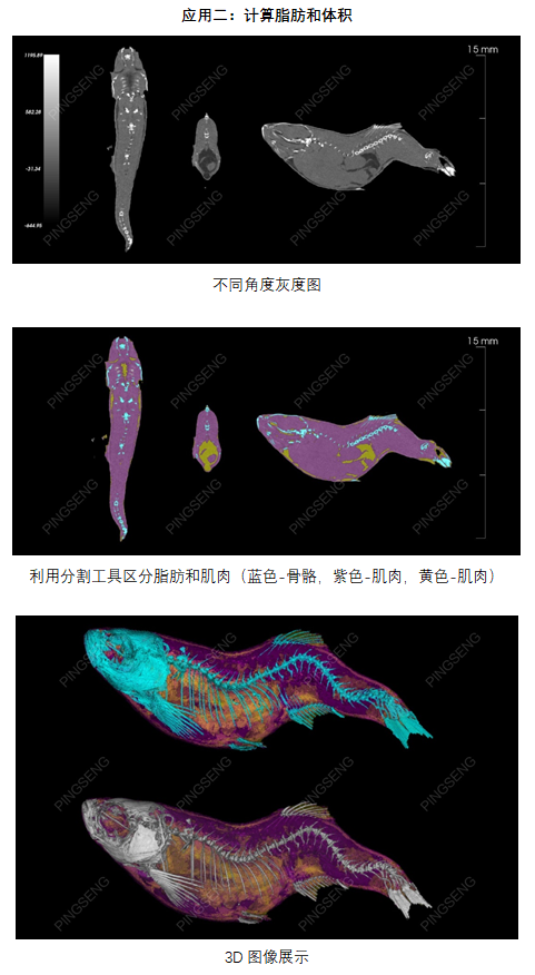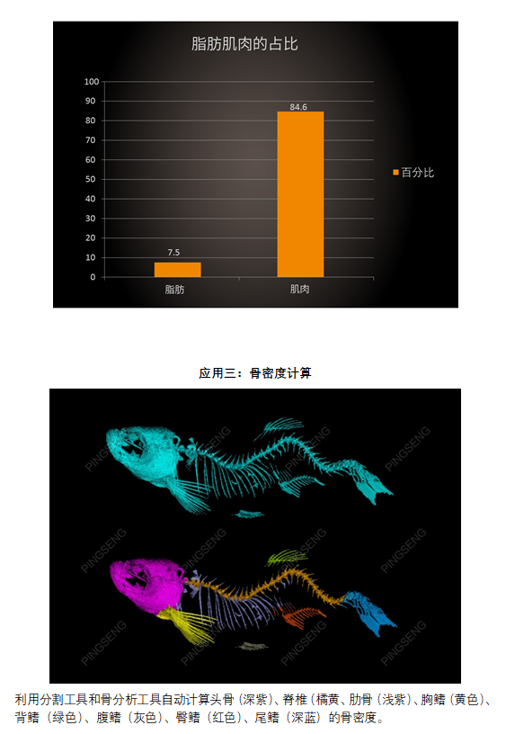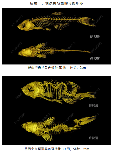 利用一定造模手段,使得斑马鱼的脊椎骨发生基因突变。由于外形上是看不出突变的形状,需Micro CT扫描并重建,通过观察斑马鱼的脊椎骨突变后的具体形态,来判断造模是否符合预期。在研究骨骼形态的同时,也可以对骨骼的骨密度、肌肉和脂肪的比例进行研究。在Micro-CT助力下,以斑马鱼为疾病模型的研究会有越来越多的突破!