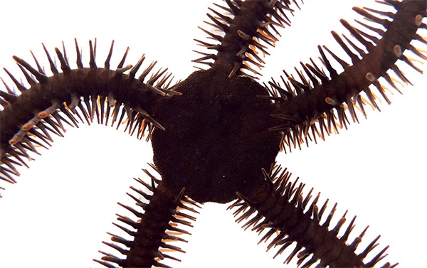 海蛇尾不用眼睛便能“看见”事物。图片来源: Lauren Sumner-Rooney看,并不总是需要眼睛。一项最新研究显示,海星的近亲——海蛇尾能审视海底,而这靠的是散布在皮肤上的感光细胞,而非利用像眼睛一样的结构。这项日前发表于英国《皇家学会学报B》的研究,颠覆了长期存在的关于海蛇尾如何看见周围环境的假设。尽管海蛇尾没有大脑,但这种居住在礁石上的动物——拥有5个连接到中央圆盘的腕——能探测到光线并且远离它。裹在一层薄薄的皮肤中的海蛇尾骨架被覆盖在串珠状晶体结构中。科学家曾认为,这种晶体结构作为一个大的复眼共同发挥作用。通过将光线聚焦到被研究人员认为在这些“微透镜”下面运行的神经束上,这种排列使海蛇尾得以形成图像。不过,当一个由进化生物学家组成的团队更加仔细地研究了海蛇尾的骨骼时,他们意识到微小的晶体结构可能同视觉并无关联。美国洛杉矶自然历史博物馆动物学家Gordon Hendler表示,最新研究提供了同此前解释相矛盾的“强有力的证据”。 Hendler是最早提出海蛇尾拥有复眼这一观点的科学家之一。此前研究证实,海蛇尾能对视觉线索作出反应。“它们不仅会远离光线,还会辨认出约14厘米外的黑暗阴影并且非常迅速地向那里移动。”主导最新研究的牛津大学神经生物学家Lauren Sumner-Rooney表示。当该团队仔细查看海蛇尾的身体时,他们发现神经束在晶体结构的中间而非底下运行。这同此前的预期相反。Sumner-Rooney介绍说,考虑到晶体结构的位置,海蛇尾不可能像此前认为的那样,将光线聚焦到神经束上。更重要的是,研究人员在覆盖海蛇尾腕骨架的皮肤中发现了大量挤满感光分子的细胞,但在类似骨骼的晶体结构底部并未发现此类细胞。Sumner-Rooney表示,由于这些感光细胞可同神经束近距离接触,因此它们可能负责探测视觉线索并且沿着这些神经发送信号。不过,耶鲁大学进化生物学家Elizabeth Clark表示,至于这些神经到底如何作出反应,目前仍不明确。一个更重要的问题是海蛇尾能否分辨形状。Sumner-Rooney介绍说,正在开展的试验表明,和拥有眼睛的动物类似,它们能分辨形状。
