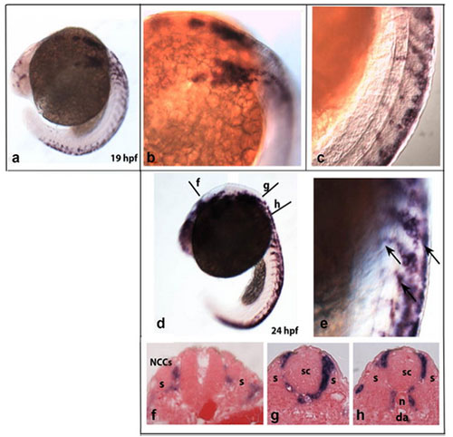 摘要:神经母细胞瘤是一种发生于外周交感神经系统的肿瘤,是儿童时期最常见的癌症。由于大多数神经母细胞瘤发病和进展的细胞和分子机制尚不清楚,在生理和疾病方面新的体内模型的建立可能会更好地分析周围神经系统的发展。这篇综述的重点是利用斑马鱼作为研究神经母细胞瘤发育的合适和创新的模型。我们简要地总结了目前关于斑马鱼外周交感神经系统形成的知识,重点介绍了在胚胎发育过程中交感神经元分化过程中起关键作用的关键基因和细胞途径。因此,我们注意到斑马鱼模型在神经母细胞瘤研究领域的价值,它可以提高我们对胚胎发育过程中恶性转化和进展的基因和生物通路的认识。关键词:神经母细胞瘤 斑马鱼 胚胎发育 交感神经 嵴细胞 嗜铬细胞 外周交感神经系统背景:神经母细胞瘤(NB)是外周交感神经系统引起的最常见的颅外实体肿瘤(PSN),包括脊髓交感神经节和肾上腺髓质。这种毁灭性的肿瘤起源于交感神经细胞系来源于神经嵴细胞(NCCS),导致大约15%的癌症儿童死亡。NB具有巨大的遗传和生物异质性,许多研究已经完成,以了解NB起源和发展的复杂机制。在过去的几年中,斑马鱼已成为研究人类疾病的经典小鼠模型的一个有吸引力的替代工具,从儿科到成人肿瘤,从血液到神经退行性疾病。值得注意的是,应用于小鼠的几种实验技术已扩展到斑马鱼,斑马鱼模型有望为癌症研究的有效治疗策略的开发提供极其有用的帮助。例如,斑马鱼已成为鉴定新化合物的重要工具,具有潜在的临床意义,允许对当前可用的化学库进行高通量筛选。一个完整的理解的斑马鱼PSN发育的潜在的生物过程将有助于确定导致恶性转化和NB进展的分子途径。斑马鱼体内模型获得的生物学信息可能有助于发现NB早期发育过程中功能失调的基因和分子途径。神经母细胞瘤概述:NB表现为局部或转移性疾病,NB患者有不同的生存率。局限性肿瘤患者预后良好,在诊断后5年以上总生存率99%以上。一年以上的转移性肿瘤患儿的生存率在诊断后5年低于40%。神经母细胞瘤的体内模型:以往的研究已经建立了不同的体内NB模型。NB小鼠模型是研究这种侵袭性恶性肿瘤生长和转移的临床相关工具。原位和皮下异种移植小鼠模型已广泛用于临床测试对NB的新治疗策略。值得注意的是,异种移植小鼠模型显示的生物学特性,这限制了在体内系统中获得标准化以反映肿瘤发病机制的可能性。这些变量包括肿瘤细胞在自然肿瘤微环境外植入前的操作。由于所施加的人工条件下,异种移植小鼠频繁发生肿瘤不代表相应的人类癌症在其原生环境发展。肿瘤细胞的操作可能会导致基因组或转录的变化不同于人癌细胞产生。为了克服这些限制,Weiss和同事们通过在神经嵴源性干细胞的大鼠酪氨酸羟化酶启动子驱动的人类MYCN癌基因过度表达建立了转基因NB小鼠模型。这些小鼠自发形成NB只在交感神经系统与人类肿瘤相似性高,证明NB成因MYCN的参与。其他转基因小鼠模型有助于阐明NB发病的细胞机制。这些动物模型支持这种儿童癌症的产前起源。在越来越多的专门综述NB起源,斑马鱼模型已经成为NB发病体内研究的一项新的重要平台。斑马鱼优势:(一)它的繁殖和透明度特性允许在短时间内研究第一阶段的发展;(二)斑马鱼胚胎和幼虫的光学透明度允许移植人类肿瘤细胞的行为研究或荧光标记的癌基因的表达。(三)它的形态将允许通过在短时间内出现的形态畸变来研究疾病表型。(四)可有数千个斑马鱼胚胎和幼虫进行组织标本采集和高通量药物筛选;(五)斑马鱼基因操纵的技术越来越多,如瞬时/稳定基因丢失和功能获得以及高通量DNA和RNA测序技术。因此,斑马鱼模型是一个强大的工具,用于分析在PSN发展和NB的起源的分子通路。这一生物学信息不仅对准确了解恶性转化发生的时间和地点非常重要,而且对于快速确定可能的遗传或化学肿瘤进展调节剂具有重要意义。斑马鱼作为研究外周交感神经系统发育的模型:越来越多的证据表明,NB是在胚胎期从NCC血统中产生的。交感神经节和成熟肾上腺髓质细胞来自NCC的瞬态池。这些细胞经历了四个关键的发育阶段。首先,从神经管的背侧区域的NCCs发生上皮间质转化(EMT),大部分分化为交感前。然后,交感前向附近的背主动脉脊索腹侧部迁移。最后,这些细胞的神经分化程序激活,演变为成熟的交感神经节和肾上腺髓质的嗜铬细胞。神经嵴细胞上皮-间质转化的诱导:在神经胚形成后,NCCs经历神经管顶板的EMT。从神经上皮层迁移通过外围,分化为多种细胞类型,包括外周神经系统和肠神经系统的细胞、色素细胞、雪旺氏细胞、肾上腺髓质细胞和颅面骨的软骨细胞。钙在细胞表面的表达下调,细胞骨架重构和蛋白酶的合成是关键事件,调解这一过渡。这些细胞的变化对于胚胎发育过程中许多组织的发育也是必不可少的。有趣的是,类似的修改都概括在病理过程中,如纤维化、肿瘤耐药。最近,在体外研究表明,EMT可能也参与了NB的发,Nozato和他的同事们发现,KRT19、ErbB3,Twist1和Tcf3 EMT相关基因在一组NB患者中的差异表达。因此,除了MYCN基因扩增,EMT相关基因的表达水平可能成为一个额外的患者的预后标志物。尽管最近发现了这一点,但在体内模型中没有确凿证据支持EMT和NB发病机制之间的关系。因此,需要进一步的研究来阐明EMT是否在肿瘤的发生发展和最终转移中