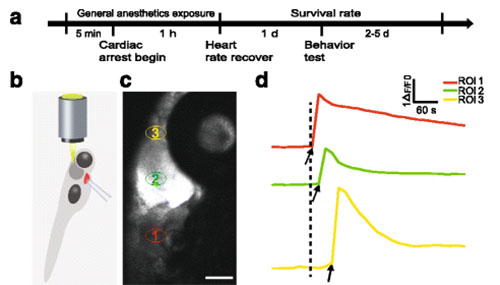 全身麻醉药通过抑制斑马鱼体内钙波的传播来保护心脏骤停引起的脑损伤
