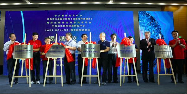 此外,华大基因北方中心、青岛华大基因研究院、海洋生物基因测序共享平台、半岛出生缺陷精准医学中心、华大 -Lars Bolund 整合再生医学研究所等同时挂牌。华大基因北方中心分别与国家海洋实验室、中国海洋大学、澳柯玛集团等 16 家科研单位及企业进行合作项目的集中签约。这标志着华大向落地青岛、扎根青岛国际合作区迈出了坚实的一步,华大基因北方中心的启用也迎来了良好开端。自 2016 年 8 月 8 日华大与青岛市政府签订合作框架以来,青岛华大积极与相关机构开展科研合作,发起海洋组学大科学项目,旨在进一步推进青岛市海洋资源、科学、技术和产业的国际交流与合作,实现互利共赢。