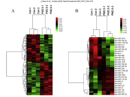 不久前,首都医科大学在《Chemosphere》(影响因子4.2)杂志上成功发表的文章中就提及PM2.5对斑马鱼多个器官都会造成危害。而这篇在《Science of the Total Environment》杂志(影响因子4.9)发表的文章则是进一步对PM2.5诱导的基因和微小RNA表达模式的影响进行了全面的了解。