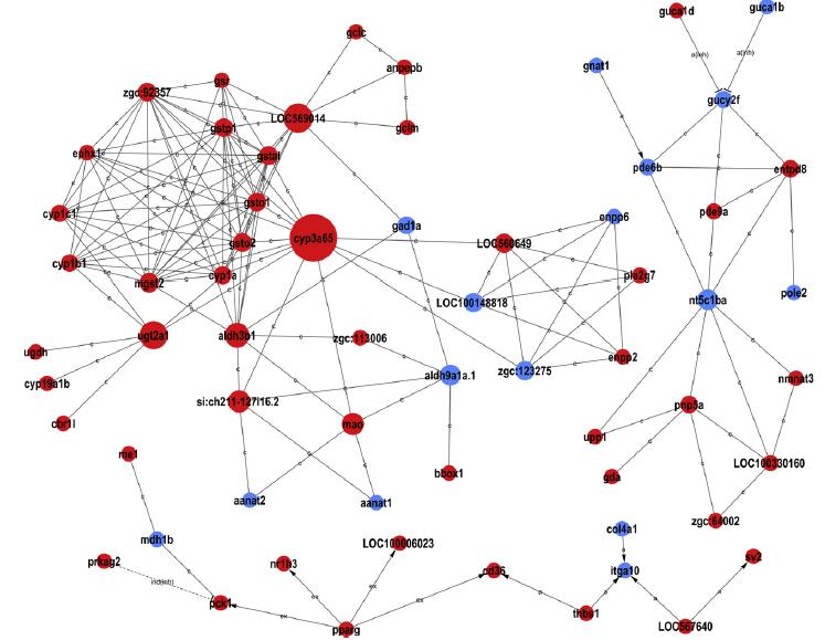 在斑马鱼上,首医的科研人员通过基因组范围内的转录分析来评估PM2.5的毒素后显示:PM2.5诱导的基因功能分类中影响最大的有氧化还原过程、转运、异种刺激反应和对化学刺激和代谢过程的反应。而通路和信号网分析表明,PM2.5暴露反应的关键途径是细胞色素P450对异种生物的代谢。