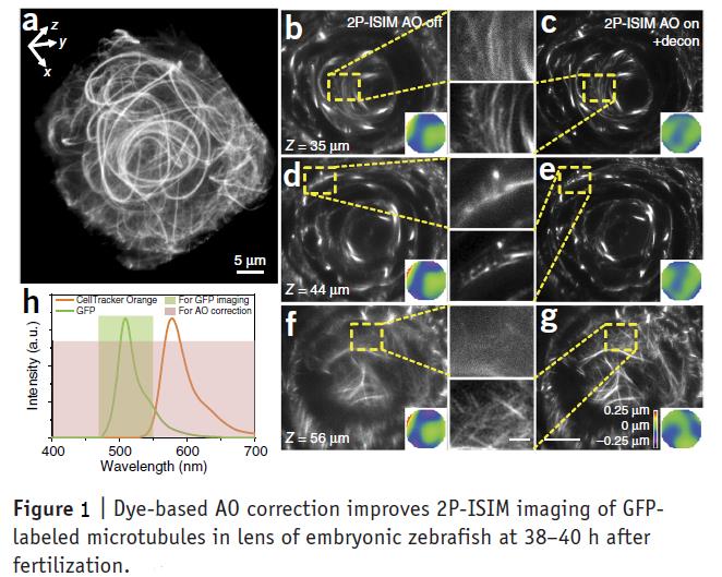 该文章被刊登在《Nature Methods》上,文章标题是“Adaptive optics improvesmultiphoton super-resolution imaging”,该项研究把具备深层生物组织成像能力的双光子显微成像技术(TPM)和具备超分辨成像功能的瞬时结构光照明显微成像技术(ISIM) 有机结合起来,实现双光子激发的超分辨显微成像功能。