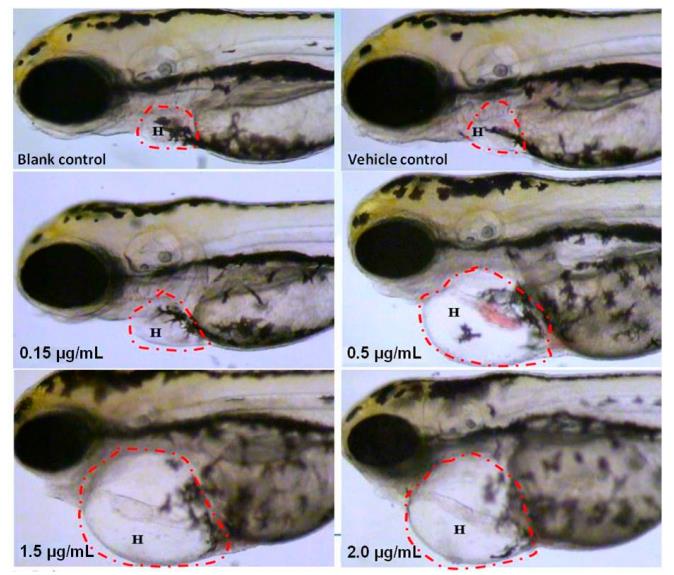 经过斑马鱼实验的验证,使用特定的表型终点评估斑马鱼的定性和定量心脏毒性:心率,心律,心脏畸形,心包水肿,循环异常,血栓形成和出血。第一次发现了SA的潜在心脏毒性,表明更多地注意其临床应用的风险1。