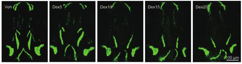 斑马鱼(斑马鱼)是一个强大的整体体内动物模型,因为它的许多优点成为了骨研究和药物筛选的首选。2006年,弗莱明等人将野生型斑马鱼幼鱼暴露于泼尼松龙后,发现茜素红染色的头骨的矿化出现了明显的延迟,而现在,斑马鱼已广泛被用于抗骨质疏松的高通量筛选。