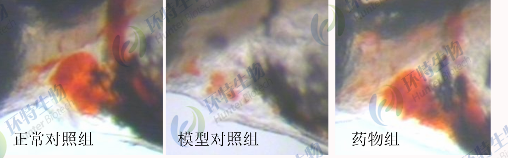 环特生物通过这一模型原理成功摸索出了红细胞性血栓模型,并用阳性药氯吡格雷、注射用血栓通、地尔硫卓注射液、黄芪注射液和丹参多酚酸盐注射液成功地进行了模型的验证。(如下图所示)。