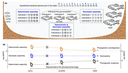 鱼类肠道微生物群落构建过程中的生态学机制及其随宿主发育的变化规律