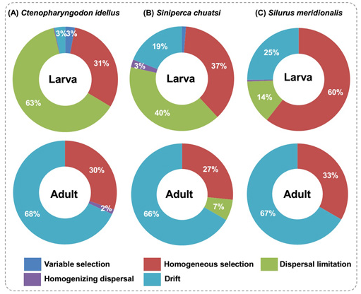 主要生态过程在鱼类肠道微生物群落演替中的贡献