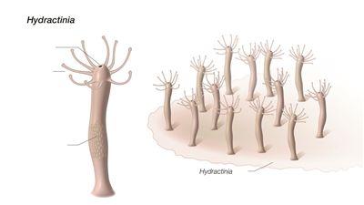 嘴头干细胞垫名为Hydractinia symbiolongicarpus的共生长水螅的再生驱动干细胞储存在其身体的下躯干中,远离嘴巴。图片来源:达里尔·利雅/美国国家人类基因组研究所