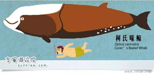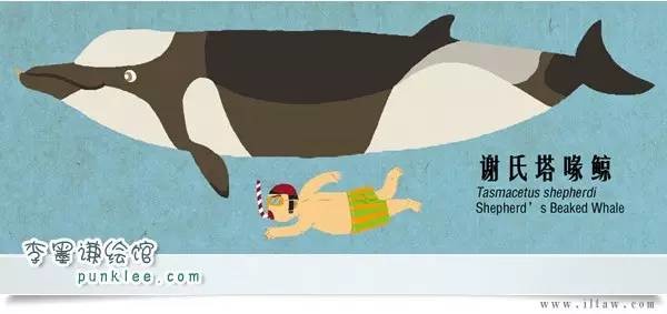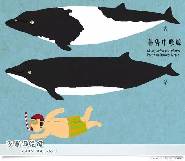 又称鹅喙鲸,是世界分布范围最广的一种喙鲸,从搁浅记录来看,它们几乎遍布全球的热带、亚热带和温带海域。目前全世界约有8万-10万头左右的柯氏喙鲸,无危。成体可长到5.5米-7米,出生时的幼体约2米-3米。从丰富的搁浅记录来看,这种喙鲸的体色非常多变,这可能跟年龄、性别等有关系,一些老年柯氏喙鲸甚至会变成纯白色。