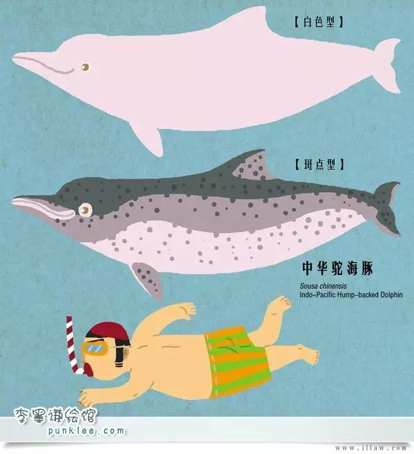 又称印太洋驼海豚、中华白海豚。主要分布于西太平洋及印度洋的浅水海域,常见于我国东海,属于国家一级保护动物。虽然没有总数统计,但由于生态破坏及捕鱼业影响,中华驼海豚部分种群的数量已经受到威胁,目前属于近危物种。刚出生的中华驼海豚呈深灰色,随着年龄的增长会变成白色,由于表皮下的血管所致通常显现为粉红色,部分成体身上还会呈现出深色的斑点。成年中华驼海豚可长到2米-2.8米长,出生时的幼体约1米长。科学界有一个观点认为,该印度洋分布的族群应独立为新种“印度洋驼海豚”(Sousa plumbea),但目前仍有争议。