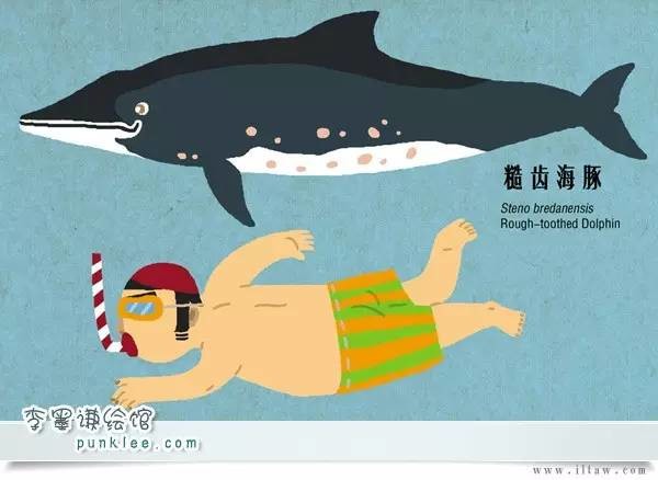 又称斜头海豚,由于头型独特因而在海上很容易鉴别。它们主要分布在全球热带、亚热带及温暖带的深海水域。目前这种海豚属于无危物种,仅在热带东太平洋就有145900头。成年糙齿海豚约2.1米-2.6米长,出生时的幼体约1米长。