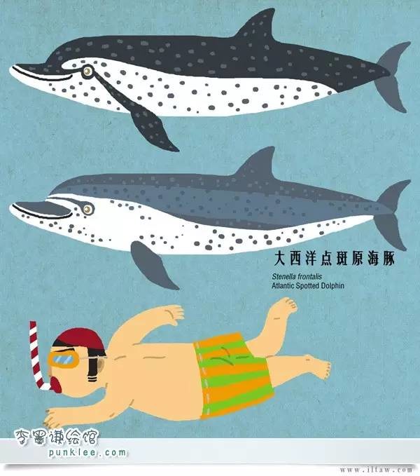 又称斑点小海豚,主要分布于南北大西洋的温暖带、亚热带及热带水域。由于变种很多,外加成年个体间斑点差异极大,所以一直以来让科学家分类起来是煞费苦心。由于缺乏数据,目前只统计到墨西哥湾北部的种群约有30947头左右。成年大西洋点斑原海豚约1.7米-2.3米长,出生时的幼体约0.8米-1.2米长。
